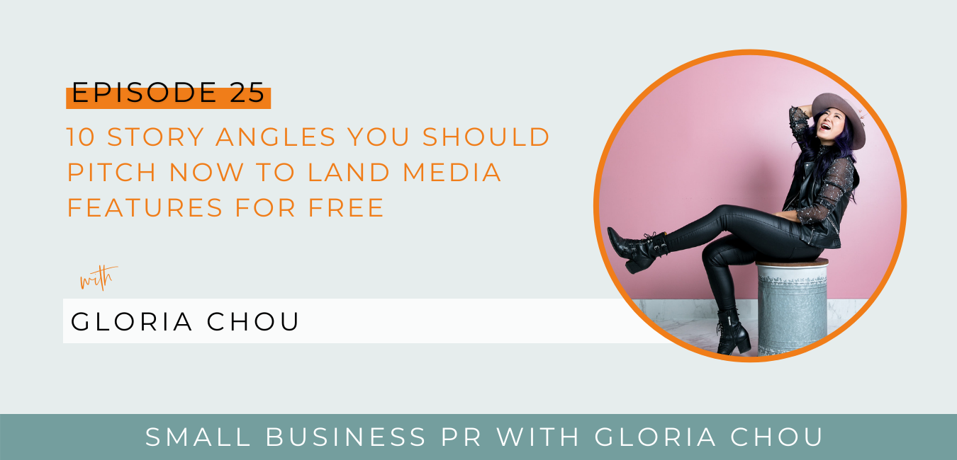 [00:00:00] Do you know the 10 best story angles anyone can pitch and get featured? This episode is going to be one you’re going to want to come back to because I break down the top 10 different story angles anyone can pitch all year round so that you can get your business featured in the media for free. Hey, friends, I’m Gloria Chou. Small business PR expert, award winning pitch writer and your unofficial hype woman. Nothing makes me happier than seeing people get the recognition they deserve. And that starts with feeling more confident to go bigger with your message, because let’s be honest, we simply cannot make the impact we’re here to make by hiding behind the scenes. So on this podcast, I will share with you the untraditional yet proven strategies for PR marketing and creating more opportunity in your business. If you are ready to take control of your narrative and be your most unapologetic and confident self, you’re in the right place. This is the Small Business PR podcast.