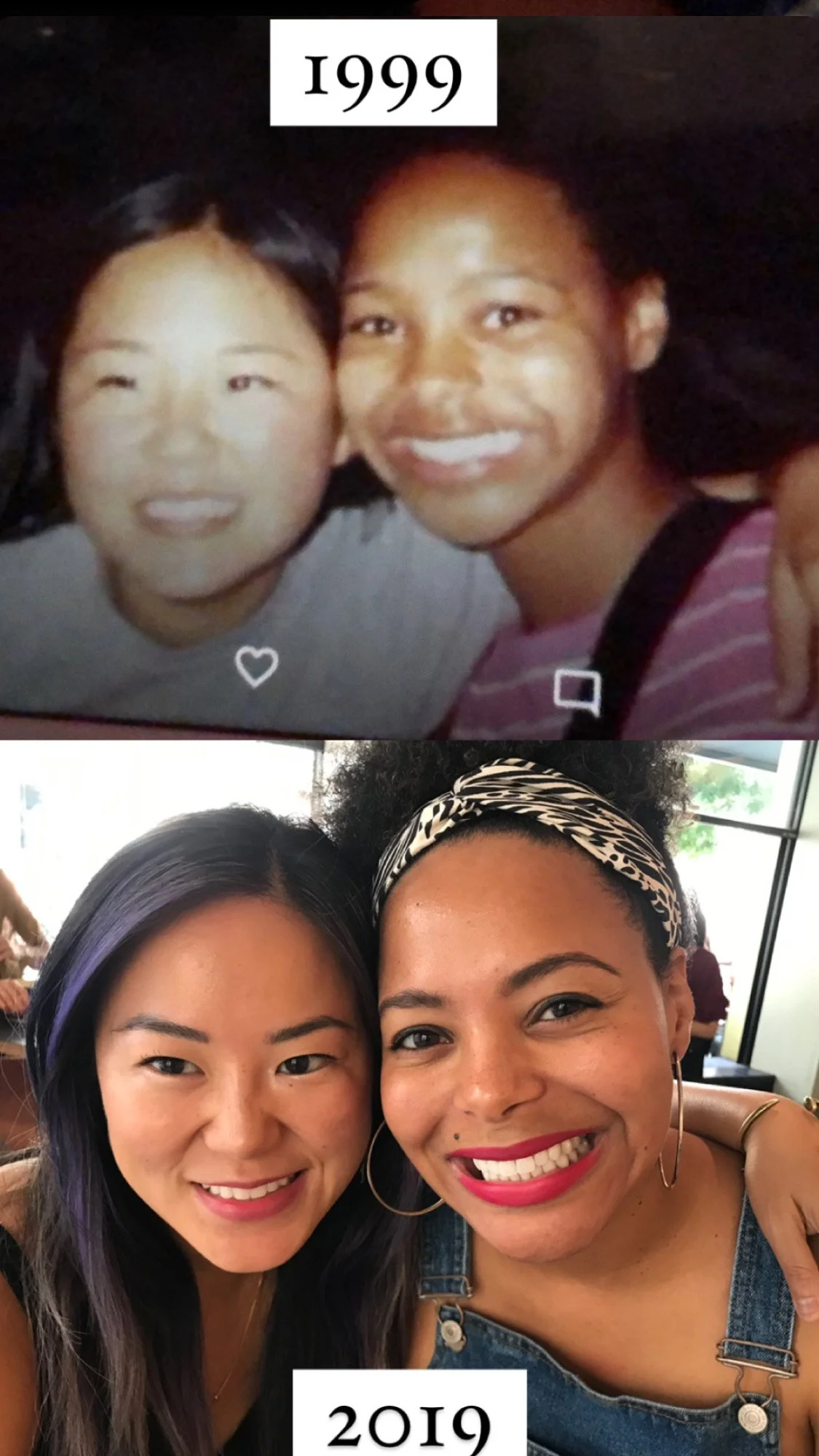 Here’s me and Jessica in 1999 and 2019. (The glow-up is REAL!)